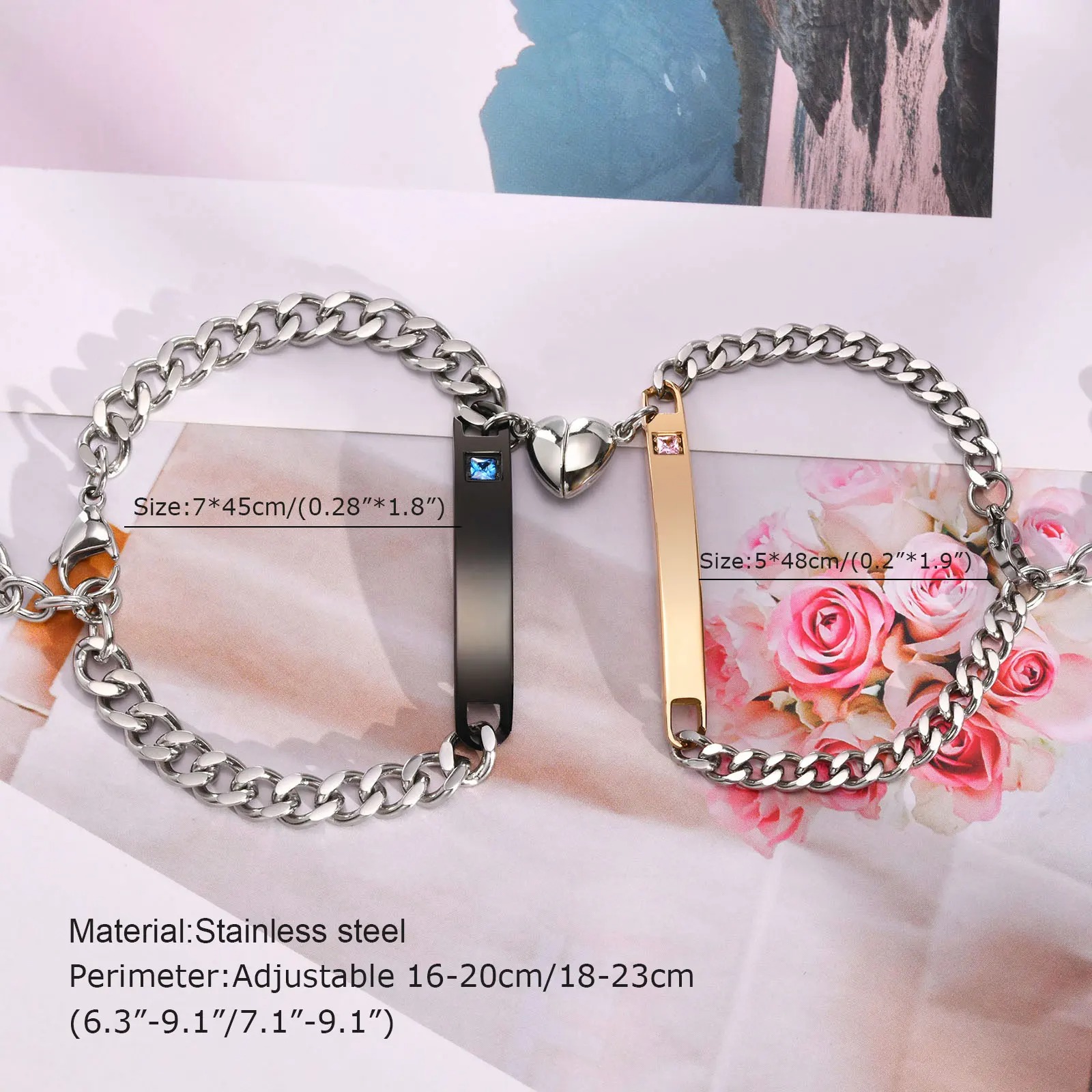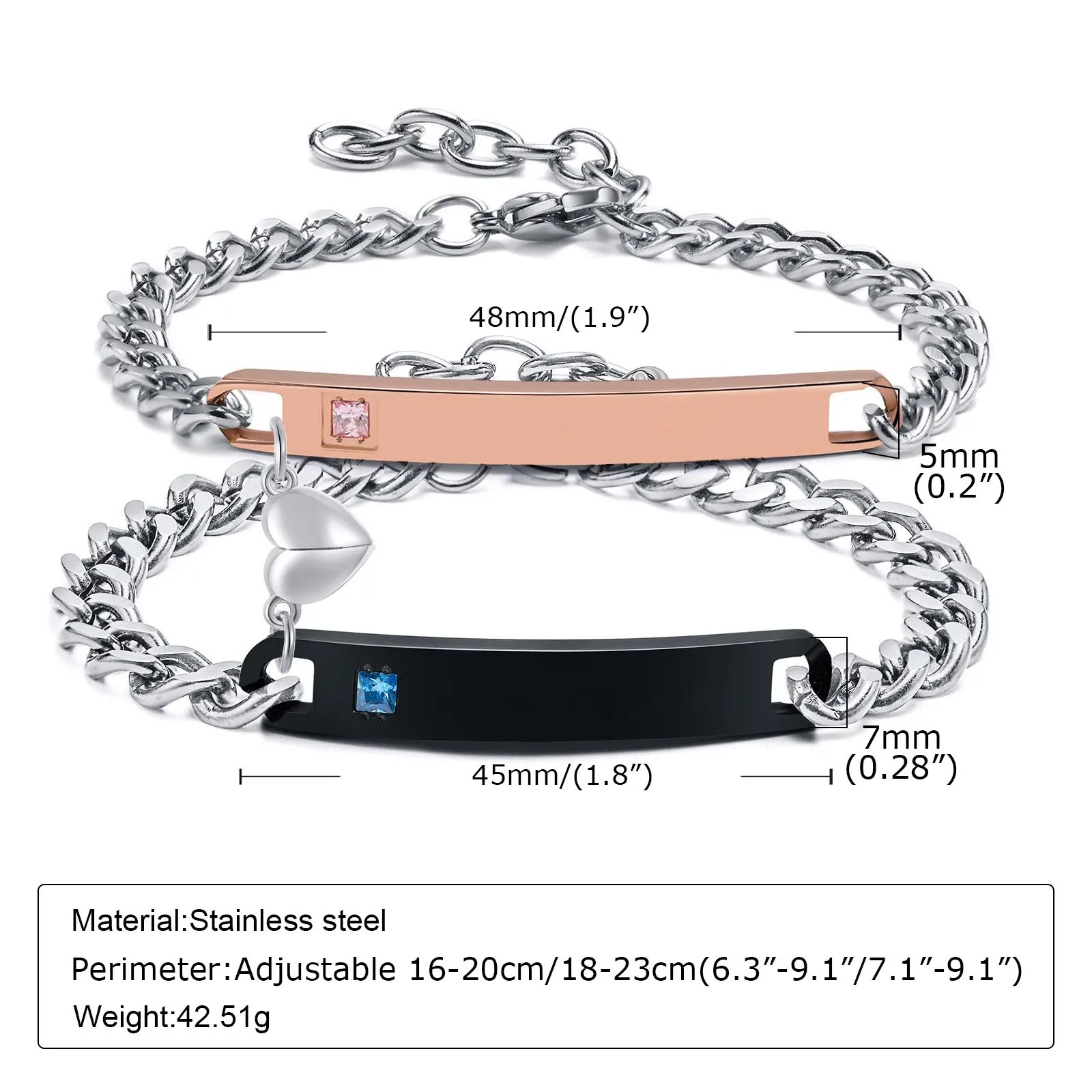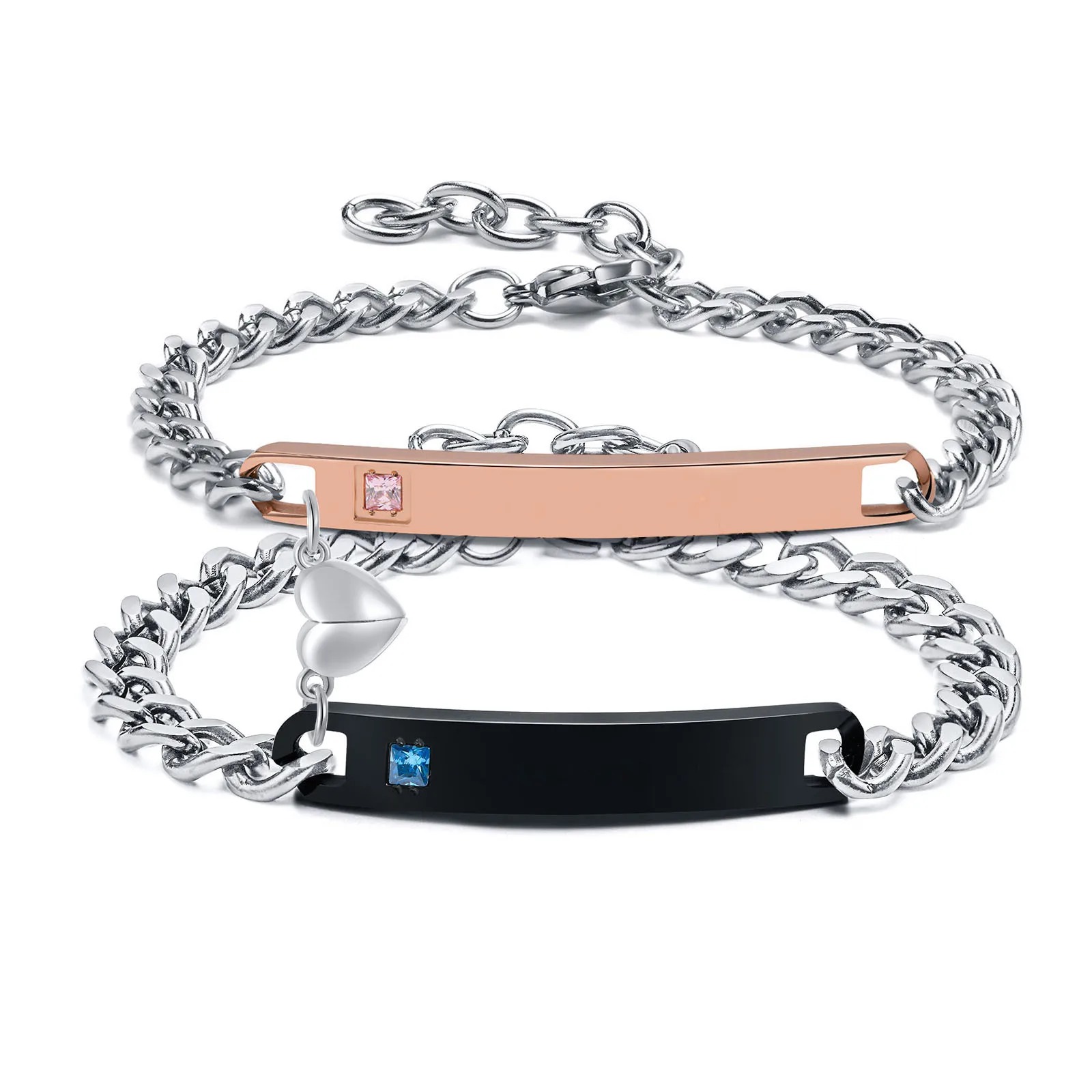 Das Pärchen Armband mit Textgravur ist ein wunderschönes Set aus zwei Armbändern, das speziell für Paare entworfen wurde. Jedes Armband besteht aus hochwertigem Material und hat ein individuelles Typenschild-ID-Design.