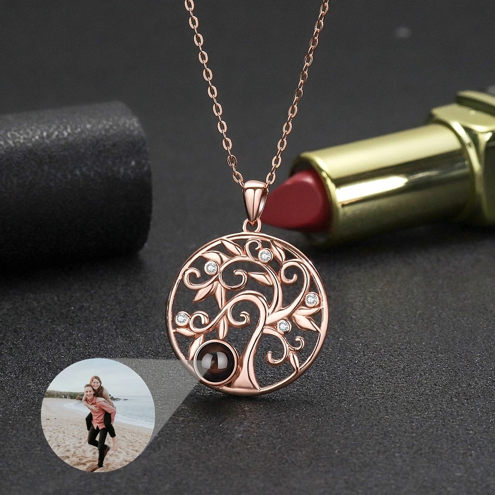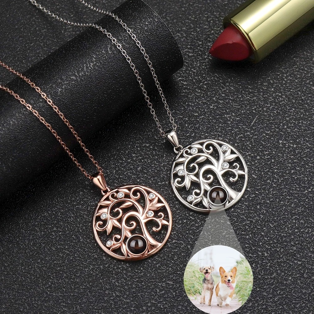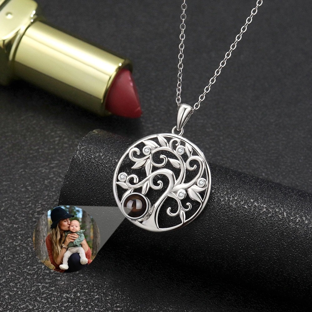Baum-des-Lebens Halskette mit Fotoprojektion – Personalisierte Damenkette aus 925er Sterling Silber