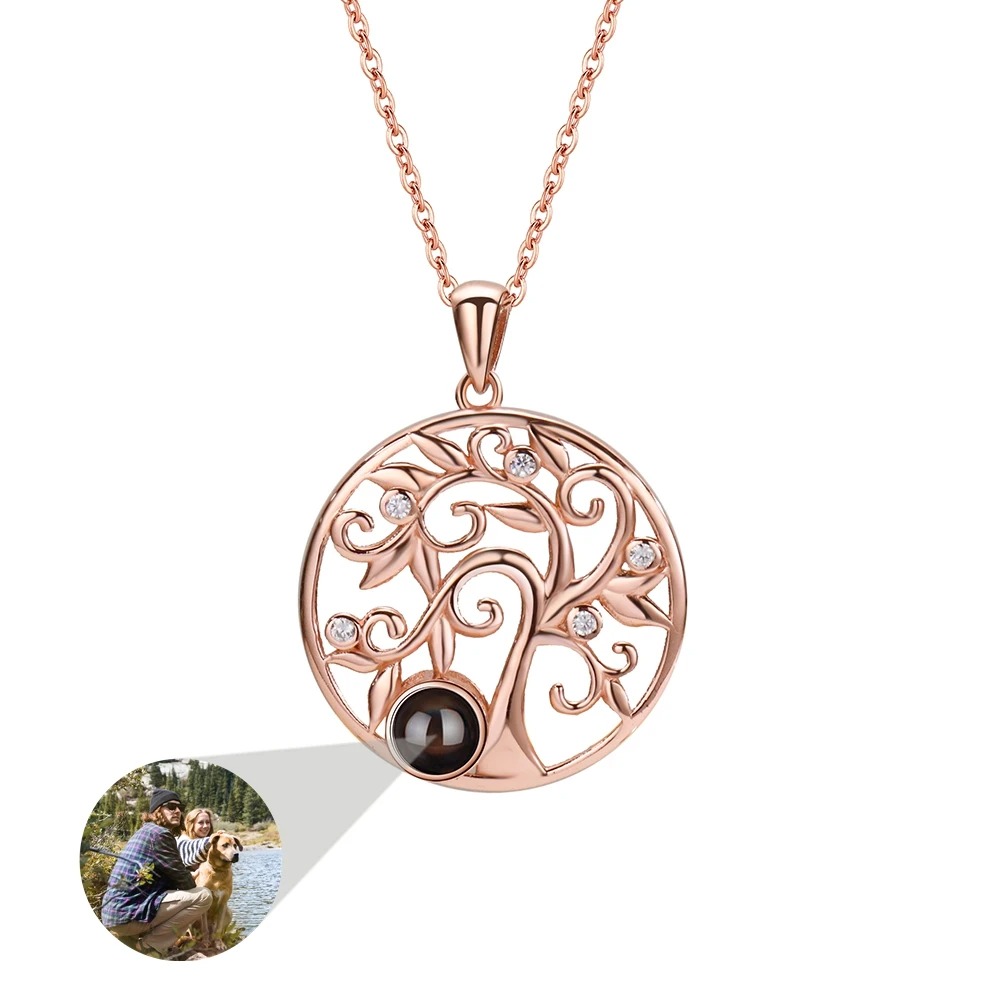 Baum-Halskette mit Fotoprojektion – Personalisierte Damenkette aus 925er Sterling Silber