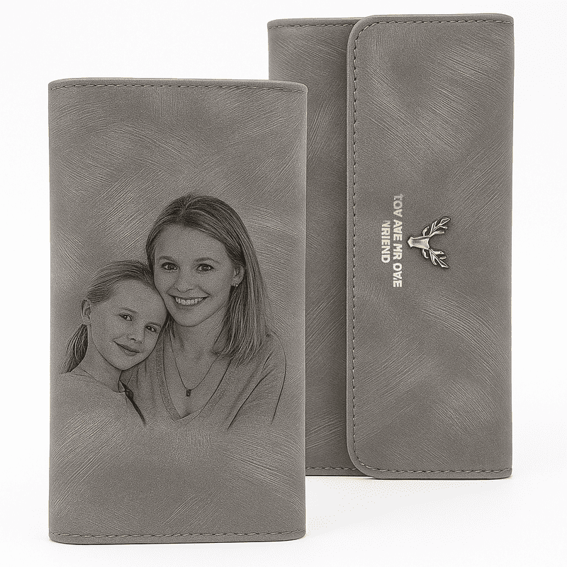 Fotogravur Portemonnaie Damen | Brieftasche selber gestalten | Foto- & Textgravur Geldbeutel mit eigenem Bild