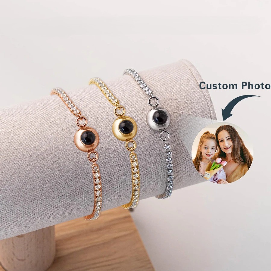 Produktinformationen "Edelstahl Projektionsarmband mit eigenem Bild – Fotoarmband für Damen"