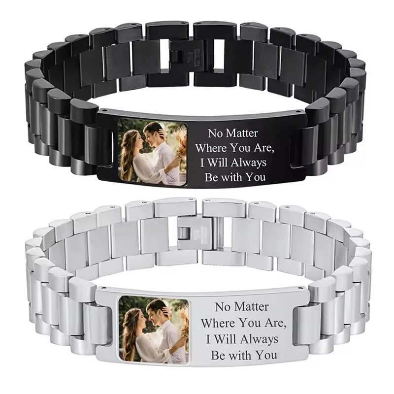 Produktinformationen "Edelstahlarmband mit Gravur – Personalisiert mit eigenem Foto & Wunschtext"