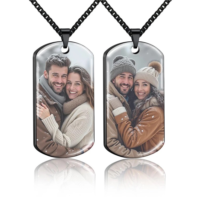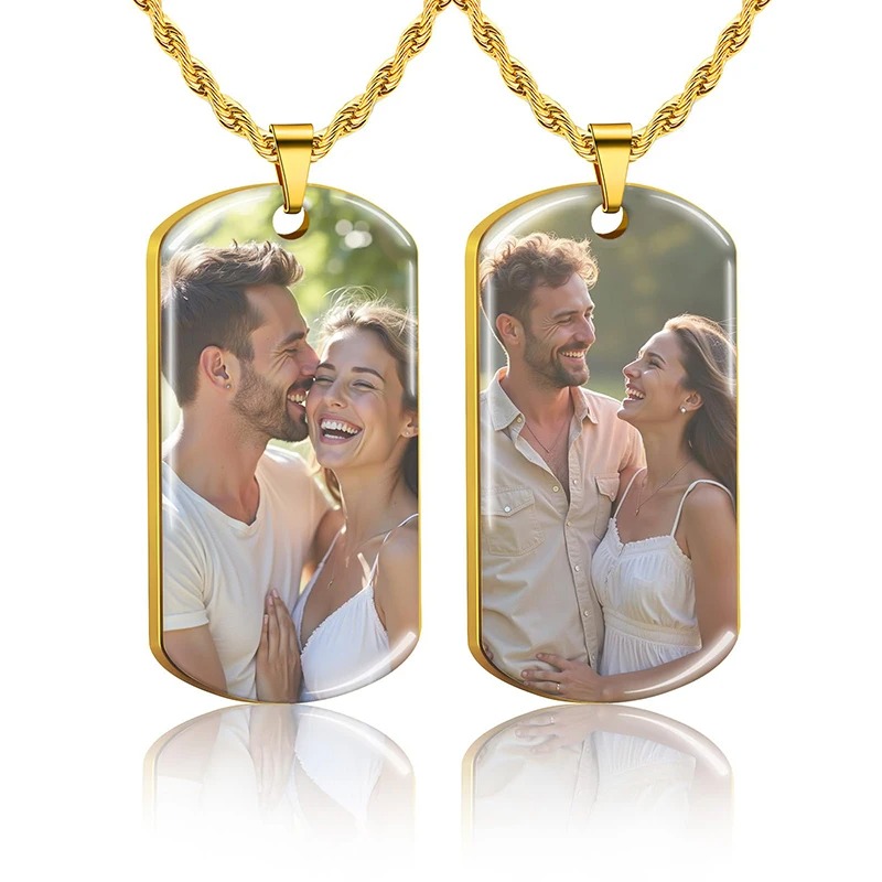 Foto-Halskette mit eigenem Bildmotiv & Wunschtext-Gravur – personalisierbarer Schmuck, stilvoll, einzigartig und perfekte Geschenkidee.