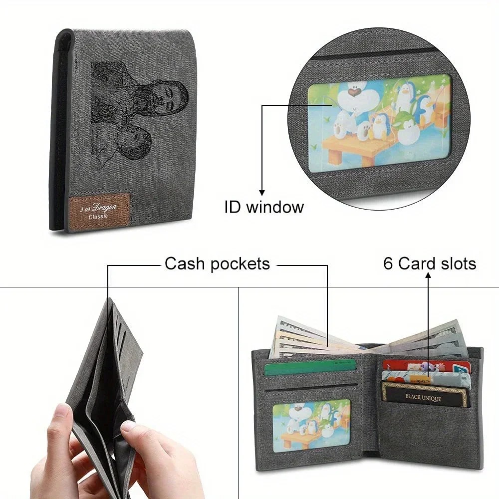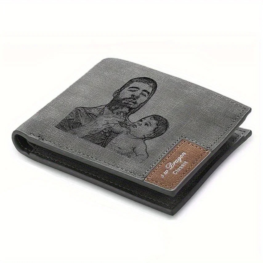 Gestalten Sie Ihre eigene personalisierte Brieftasche mit einer einzigartigen Gravur, die sowohl Ihr eigenes Bild als auch Ihren Wunschtext enthält. Diese Geldbörse bietet Ihnen die Möglichkeit, Ihr eigenes Bild und den gewünschten Text auf der Vorderseite anzubringen, wodurch die Brieftasche zu einem ganz besonderen und individuellen Accessoire wird. Die hochwertige Gravur verleiht der Geldbörse eine persönliche Note und macht sie zu einem einzigartigen Geschenk oder einem besonderen Stück für Sie oder Ihre Liebsten.