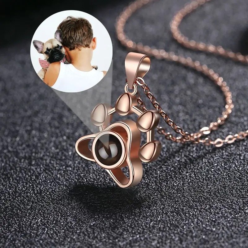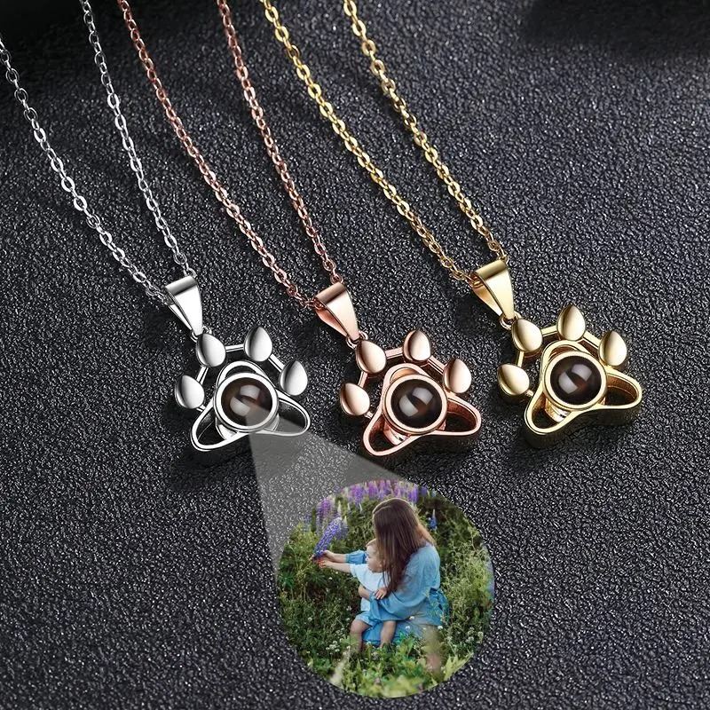 Pfoten-Halskette mit Fotoprojektion – Personalisierte Haustierkette aus 925er Sterling Silber
