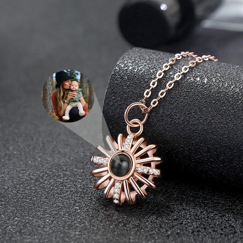 Verleihe deinem Schmuck eine besondere Bedeutung – mit dieser eleganten Sonnenstern-Halskette mit versteckter Fotoprojektion. Im Inneren des stilvollen Anhängers befindet sich eine Projektionskugel, die dein persönliches Foto verbirgt. Erst beim genaueren Hinsehen oder mit Licht wird das Bild sichtbar und sorgt für einen magischen Moment.