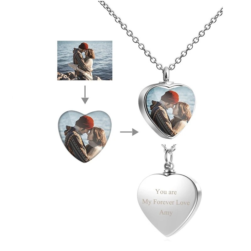 Gravierte Herz-Urnen Halskette mit Foto & Text – Personalisierte Urnenkette aus Edelstahl