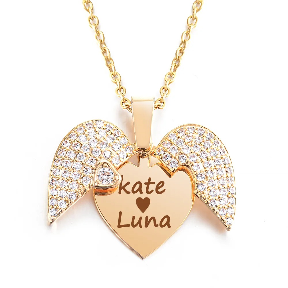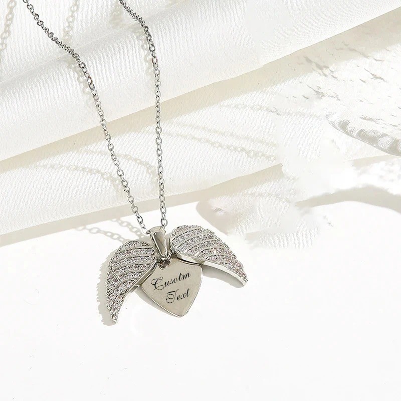 Herzflügel-Halskette mit Foto & Namensgravur – Personalisierte Damenkette aus Edelstahl mit aufklappbaren Flügeln