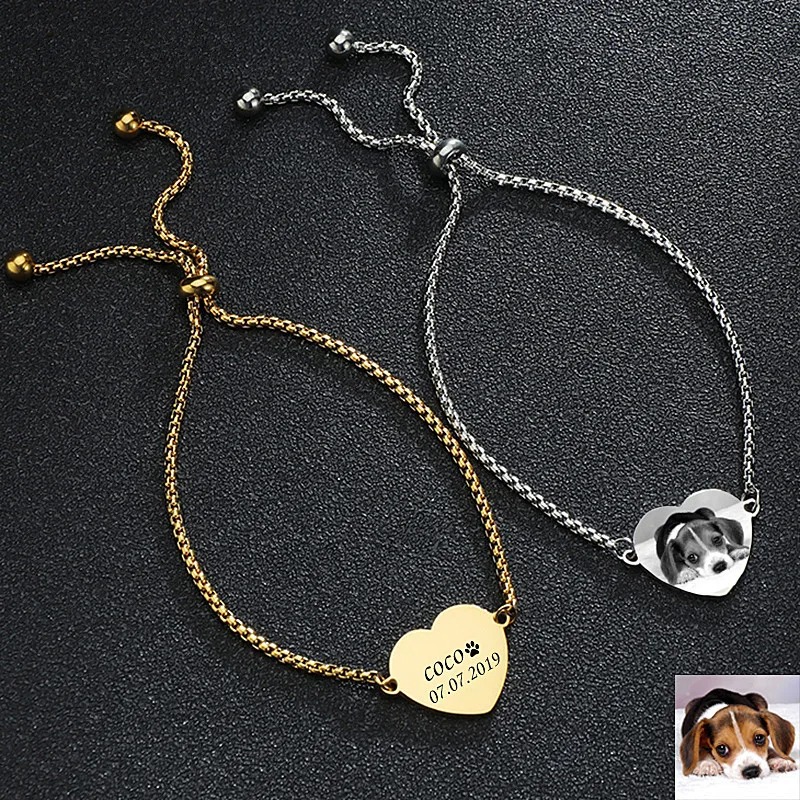 Graviertes Herz-Armband mit Foto & Text – Personalisiertes Damenarmband aus Edelstahl