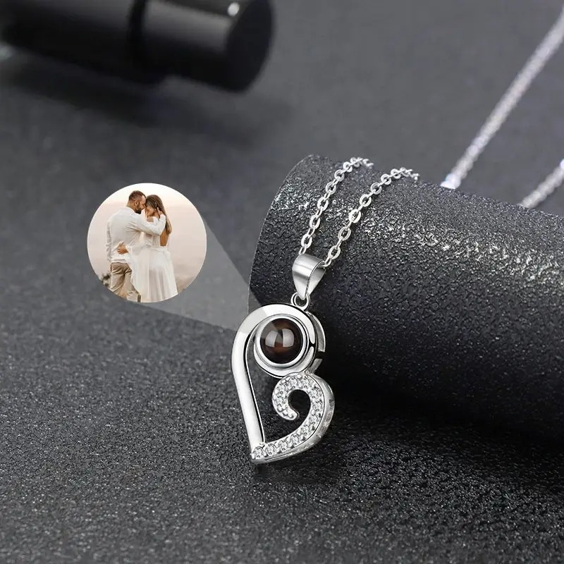 Die 2-Teilige Pärchen Halskette mit Fotoprojektion ist eine romantische und einzigartige Foto-Schmuck Kette für Damen und Herren. Das Set besteht aus zwei Herz-Anhängern, die aus hochwertigem 925 Sterling Silber gefertigt sind.
