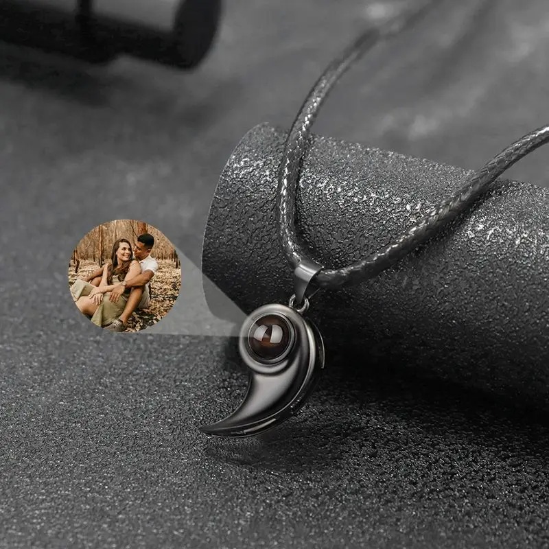2-Teilige Pärchen Halskette mit Fotoprojektion | Personalisierte Halskette mit eigenem Bild im inneren | Foto-Schmuck Kette Damen & Herren