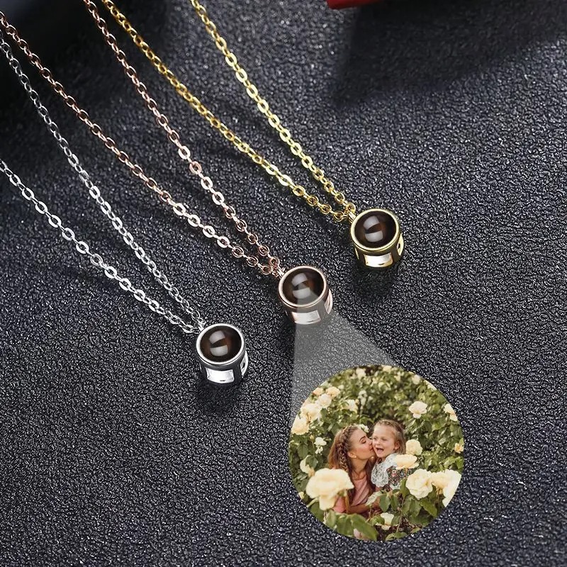 Runde Halskette mit Fotoprojektion – Personalisierte Projektionskette aus Edelstahl oder 925er Sterling Silber