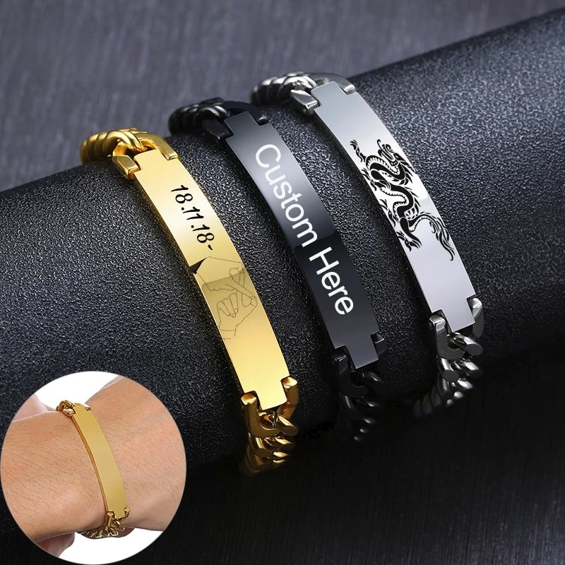 Armband mit Gravur | Gliederarmband Personalisierte Wunschtext Gravur selber gestalten | Foto-Schmuck Armband für Herren Individualisiert