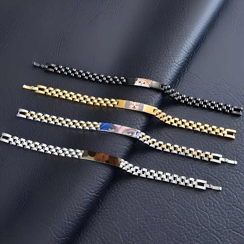 Weiterführende Links zu "Graviertes Edelstahlarmband – Foto & Wunschtext – Personalisiertes Armband mit eigenem Bild"