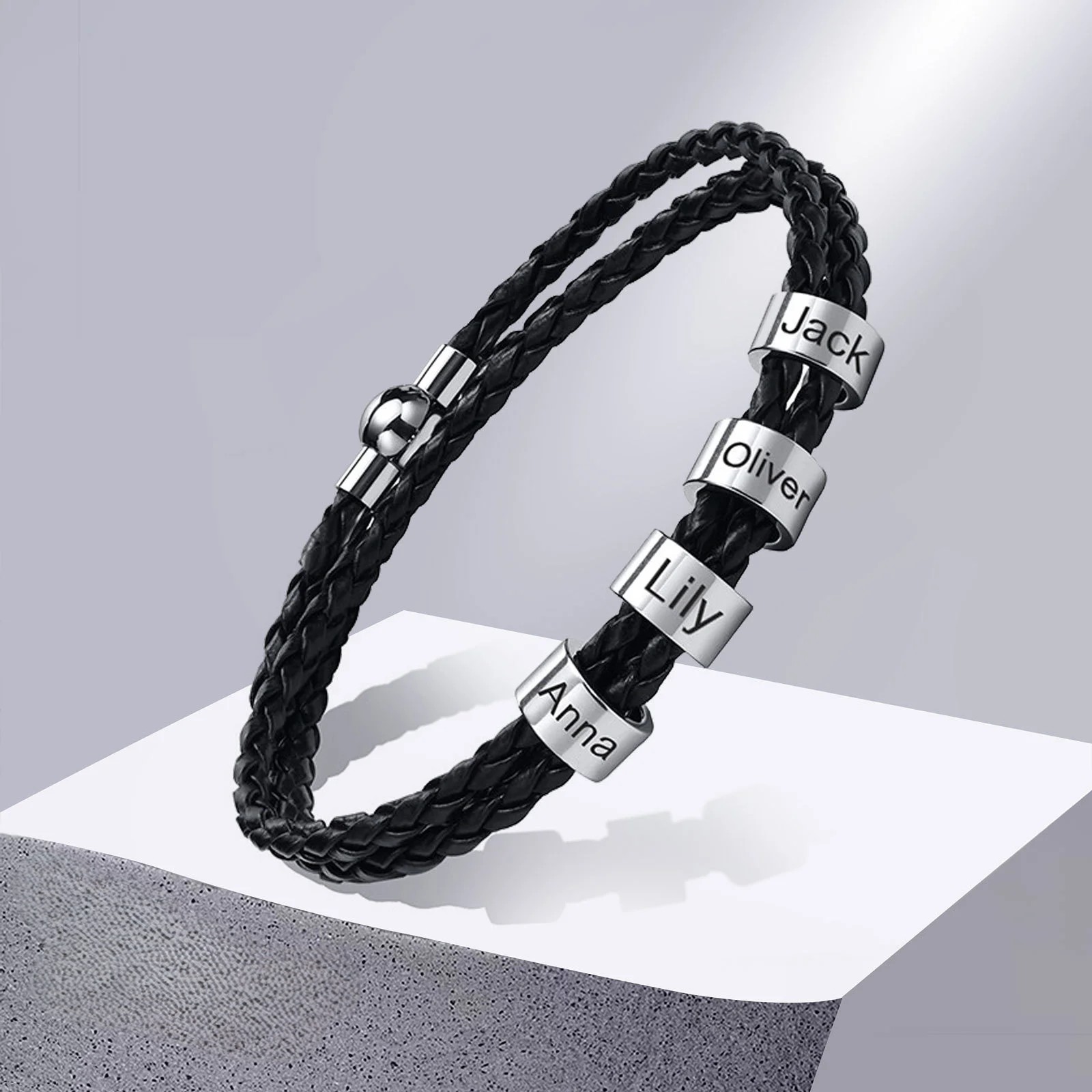 Produktinformationen "Lederarmband mit Gravur, Personalisiertes Herrenarmband mit mehreren Namen gravieren"