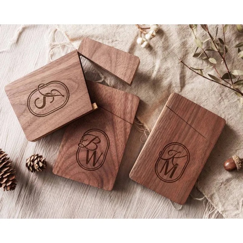 Produktinformationen "Logo-Visitenkartenetui aus Holz mit Gravur – Personalisierte Visitenkarten-Holzbox"