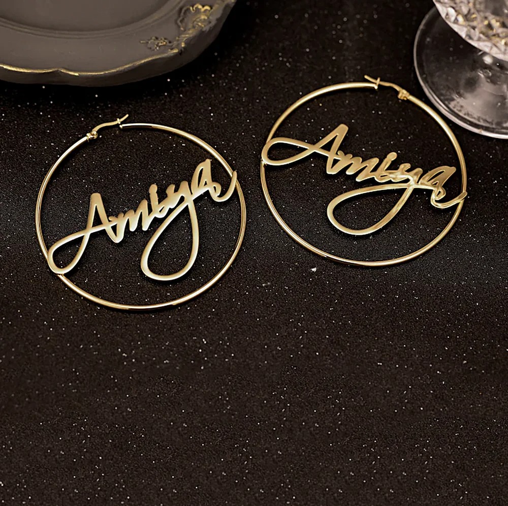 Ohrringe mit Textmotiv – personalisierte Ohrringe mit eigenem Namen, individuell gestaltet, stilvoll und perfekte Geschenkidee.