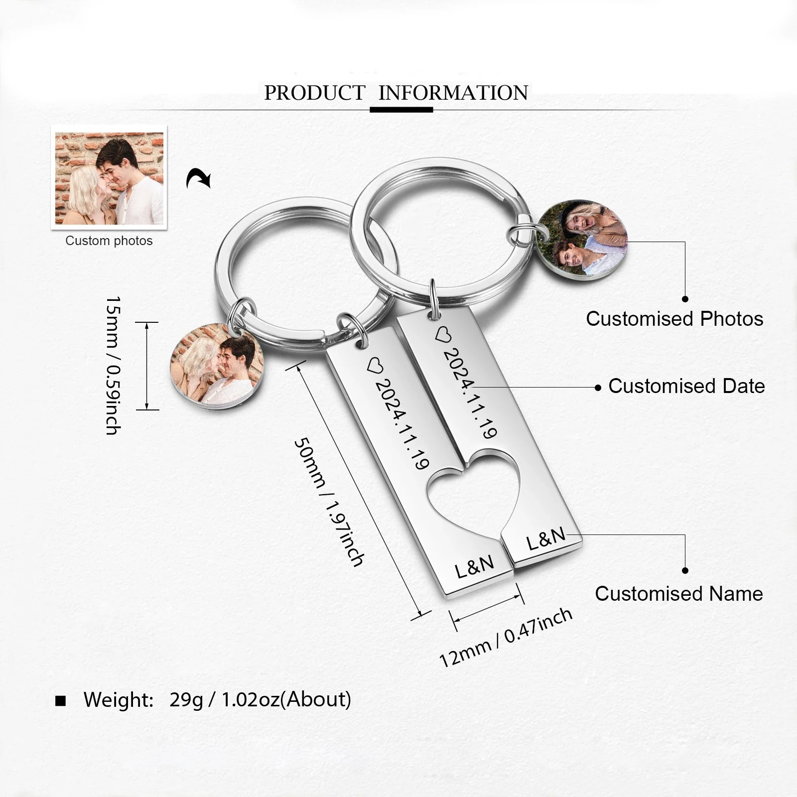 Produktinformationen "Pärchen-Anhänger mit Bildmotiv & Wunschtext Gravur – Personalisierte Schlüsselanhänger 2er Set"