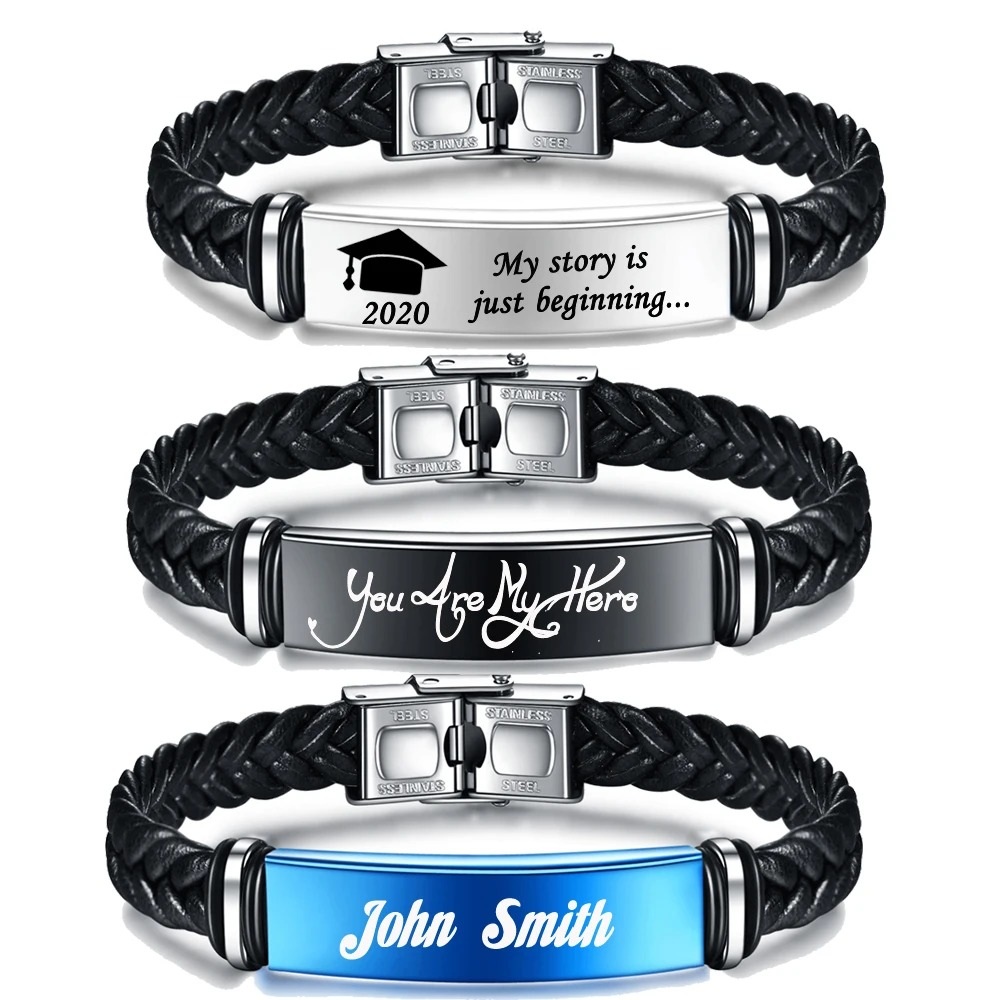 Herren Lederarmband mit Textgravur | Personalisiertes Gravur-Armband mit eigenem Wunschtext selber gestalten