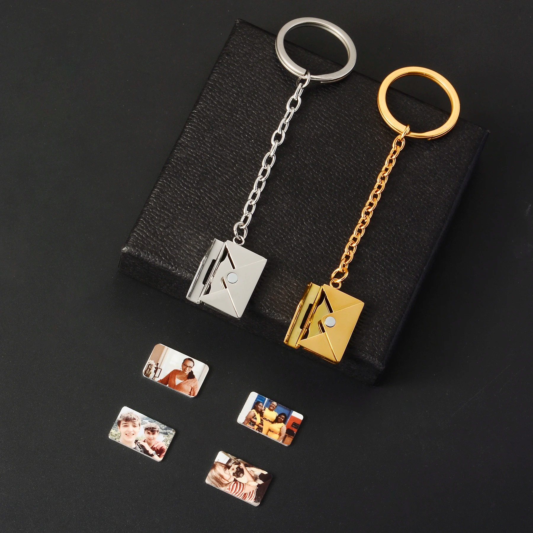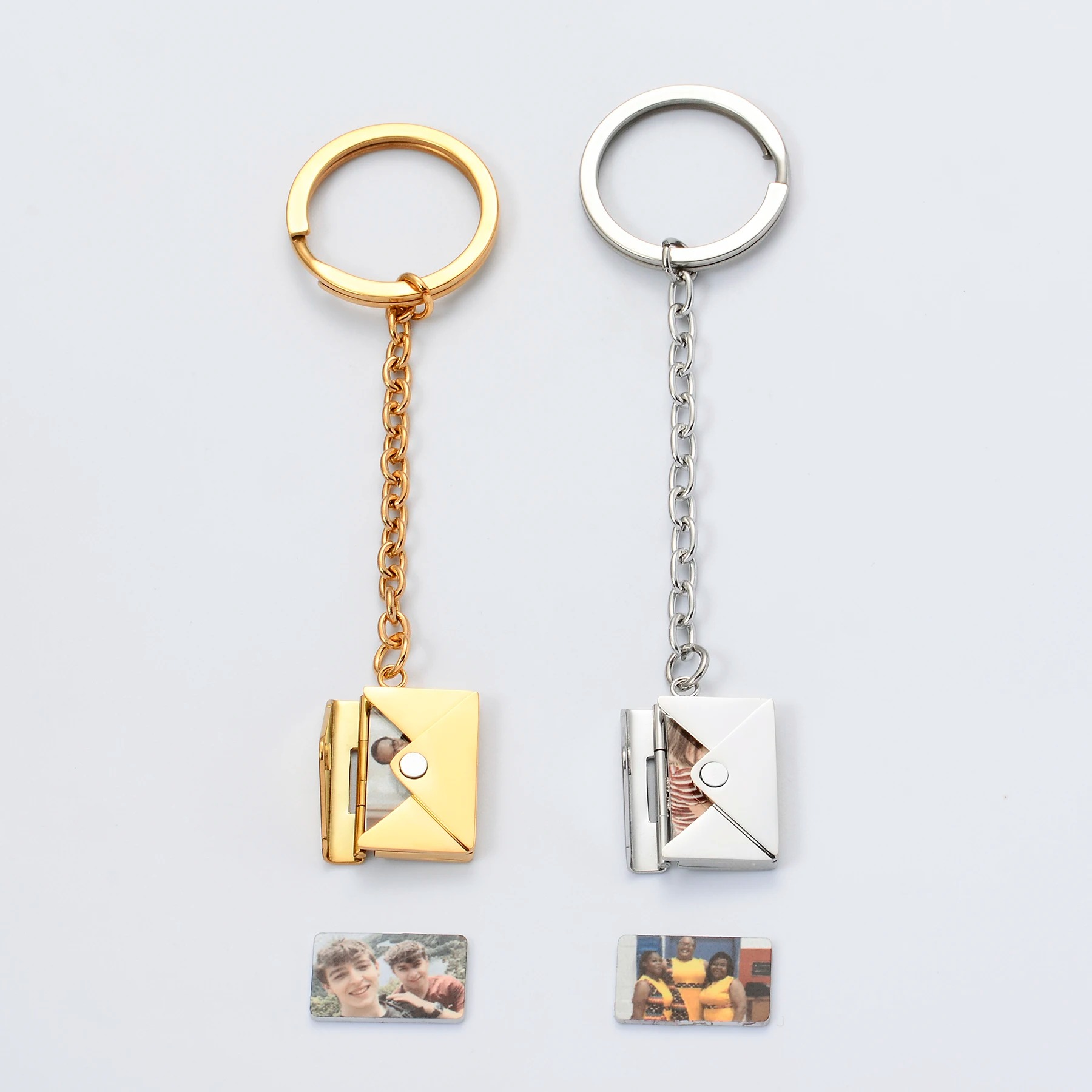 Produktinformationen "Schlüsselanhänger mit Foto – Personalisierter Briefumschlag-Anhänger aus Edelstahl"
