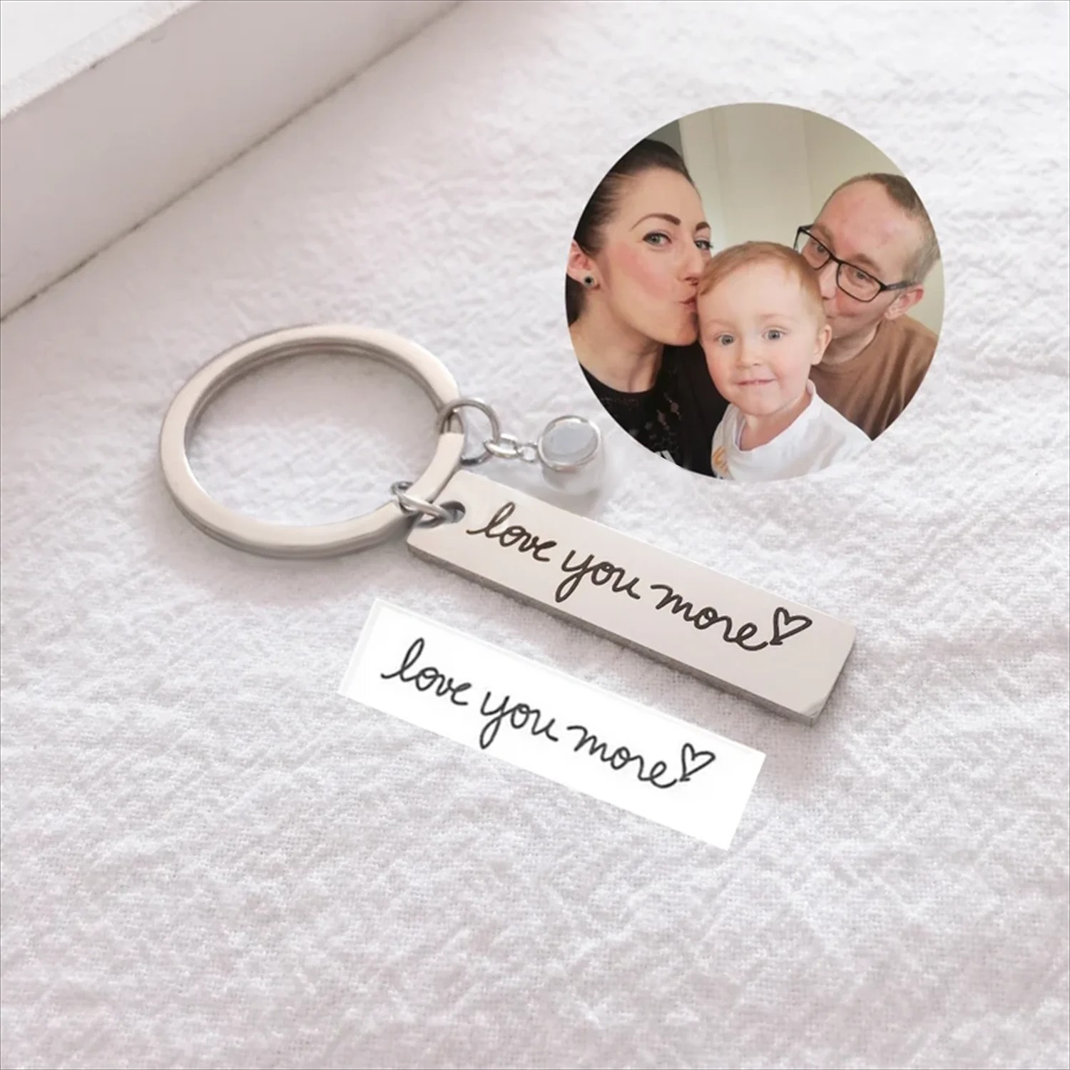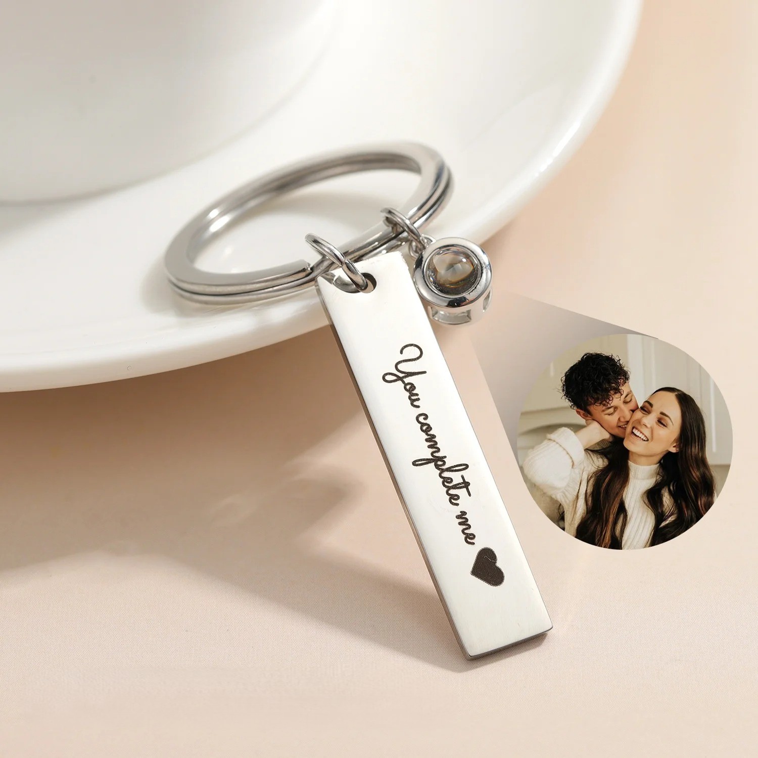 Schlüsselanhänger mit Fotoprojektion und Wunschtext-Gravur – personalisierbarer Anhänger, einzigartig, stilvoll und perfektes Geschenk.
