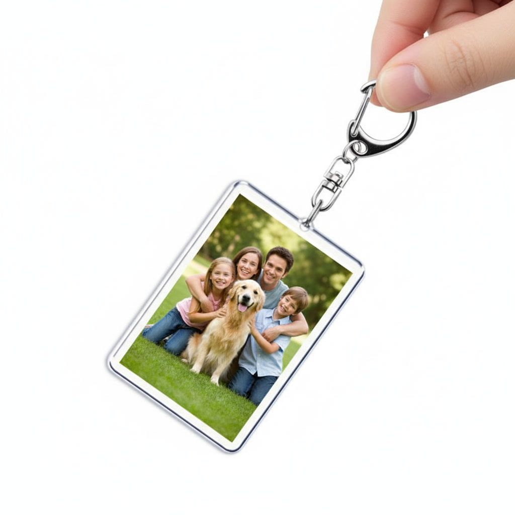 Bewahre deine Erinnerungen immer bei dir – mit diesem transparenten Foto-Schlüsselanhänger, der dein persönliches Bild auf beiden Seiten zeigt. Ein stilvolles und praktisches Accessoire, das Funktionalität und emotionale Bedeutung vereint und sich perfekt als Geschenk oder persönliches Andenken eignet.