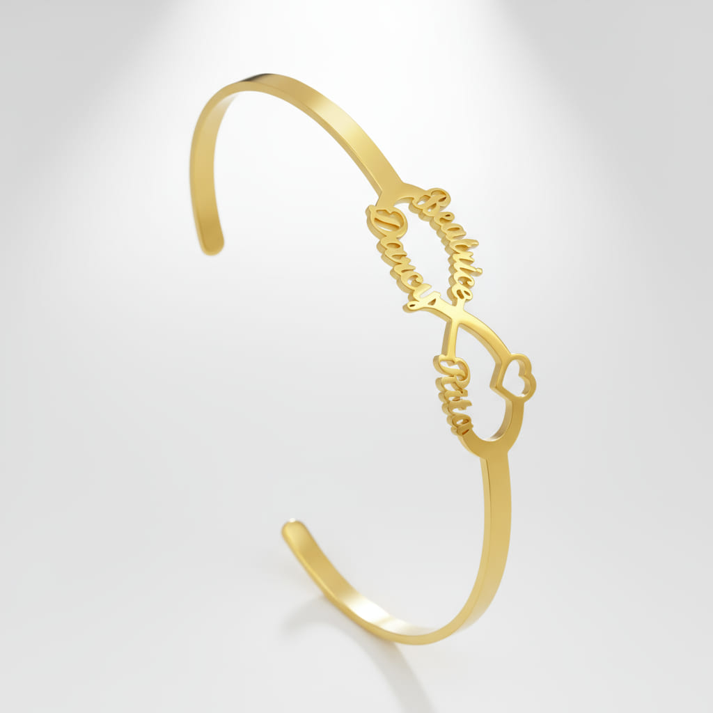 Produktinformationen "Unendlichzeichen Armreif – personalisiertes Multi-Namensarmband"